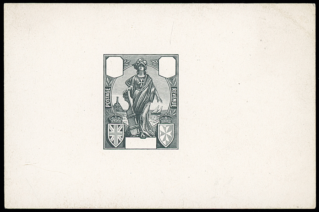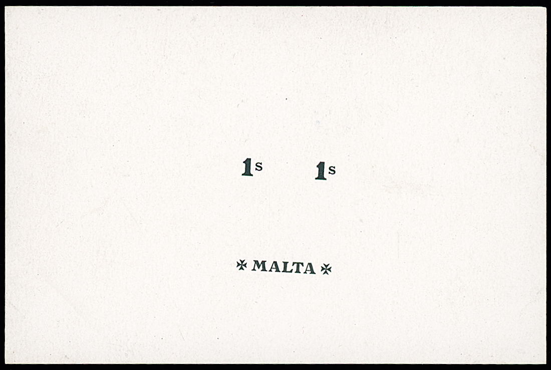 Malta: Issued Stamps: King George V: Key Plates, Proofs, 1d. die proof of the name and duty plate only, in black on glazed card (92 x 60mm), unmarked and undated. Photo. (Image1)