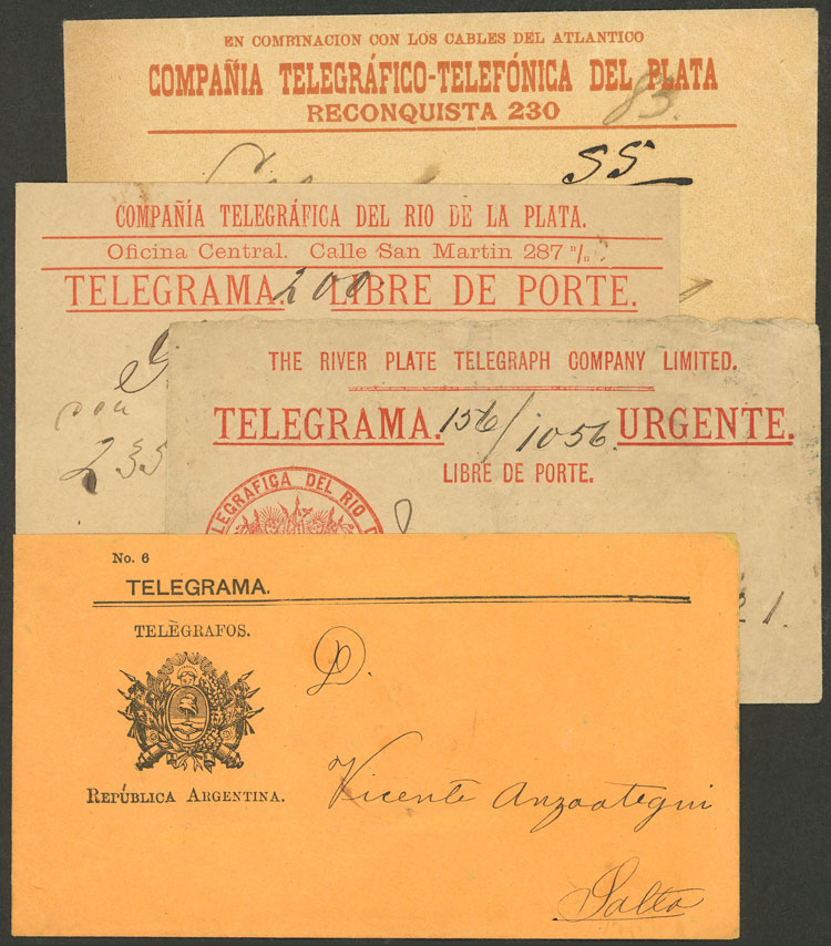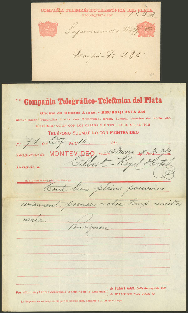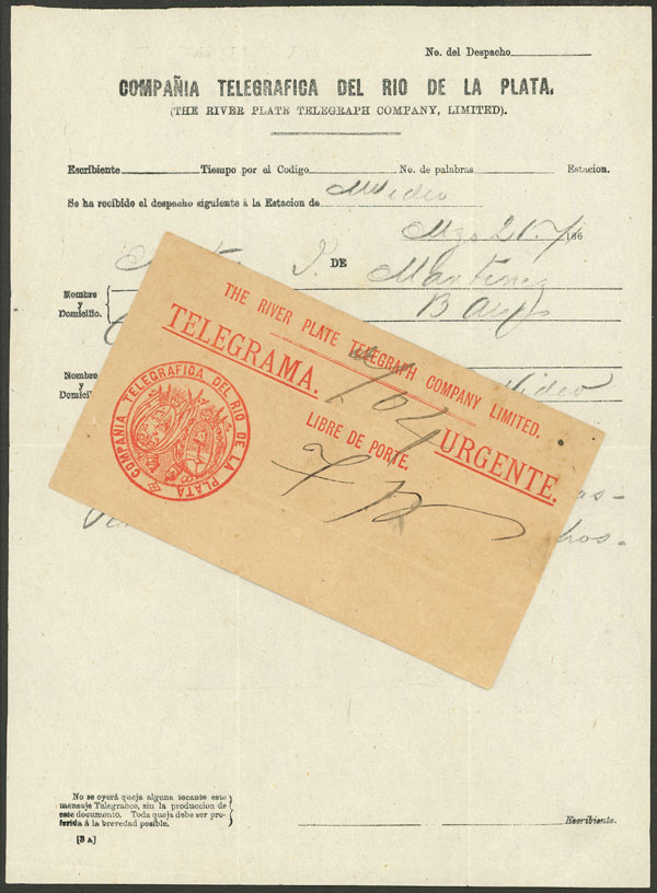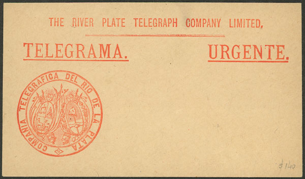 130   imageCirca 1890, envelope to deliver telegrams of "The River Plate Telegraph Company Limited", it transmitted telegrams between Montevideo and Buenos Aires, unused, excellent quality, rare! Ex-Loeb (its selling price was US$140) (Image) (Image-02) (All Images)
