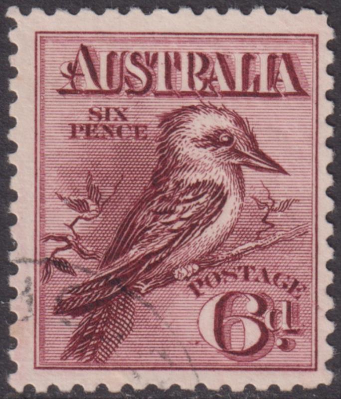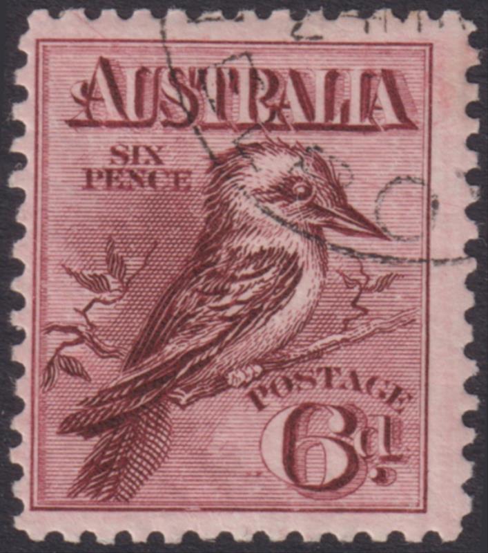 1914 6d Kookaburra claret, firm cds. SG 19. Cat £60. GU.