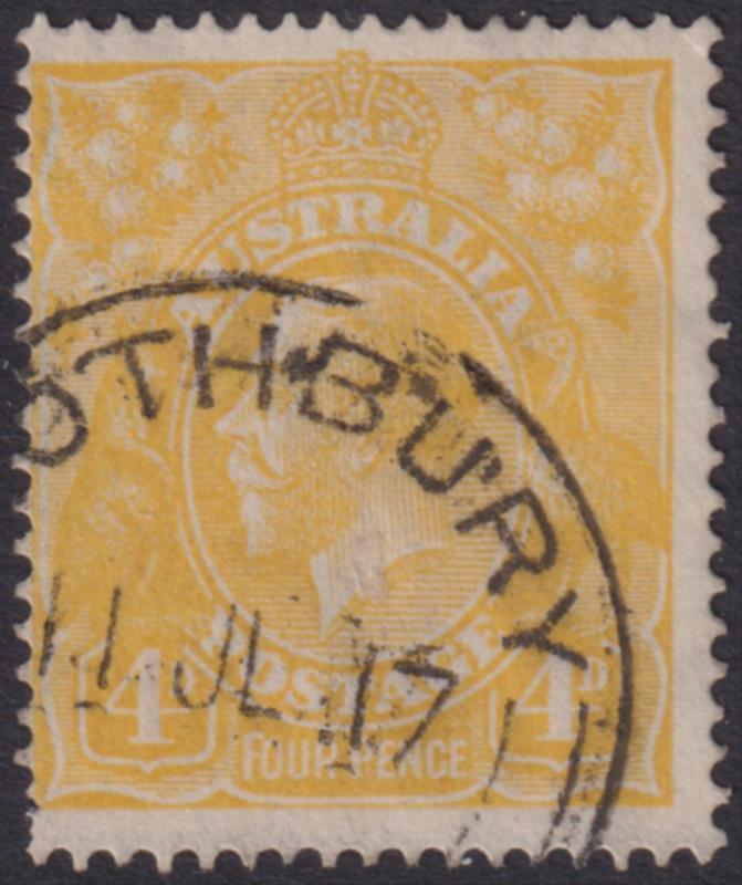 1916 4d GV lemon, tidy 11 JL 17 cds. Renniks GO17. Cat A$30. FU.