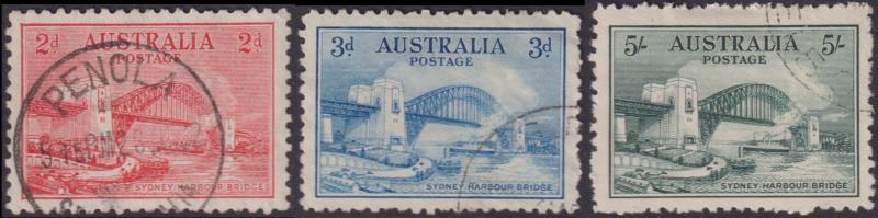 1936 South Australia Centenary set of 3. SG 161-3. Cat £17. FU.