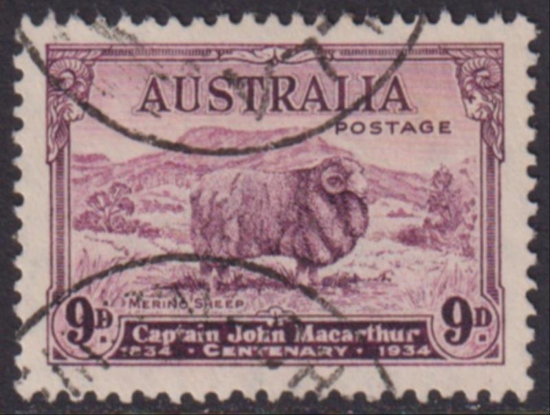 1934 9d Macarthur. SG 152. Cat £45. FU.
