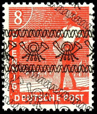 8 pfennigs worker, ribbon type overprint, variety "double overprint, one of it diagonal", perfectly mint never hinged, expertized Schlegel BPP, Michel 180.- (38IDDF) 8 Pfennig Arbeiter, Bandaufdruck, Abart "doppelter Aufdruck, einer davon diagonal", tadellos postfrisch, gepr. Schlegel BPP, Mi. 18