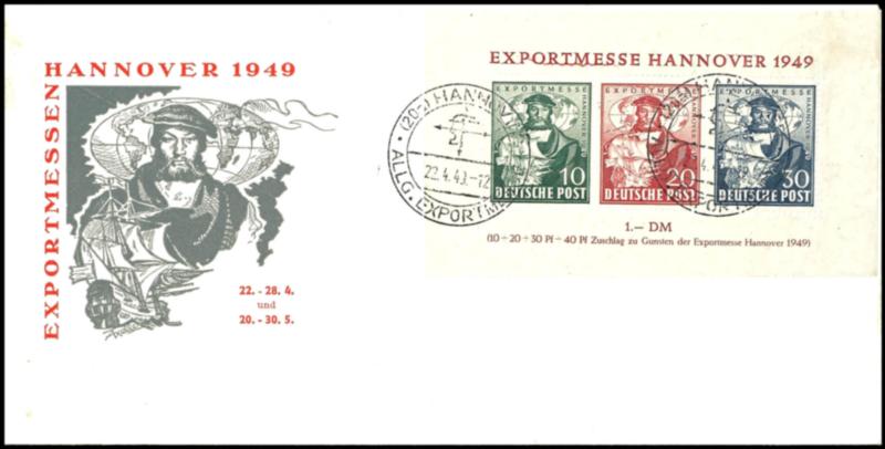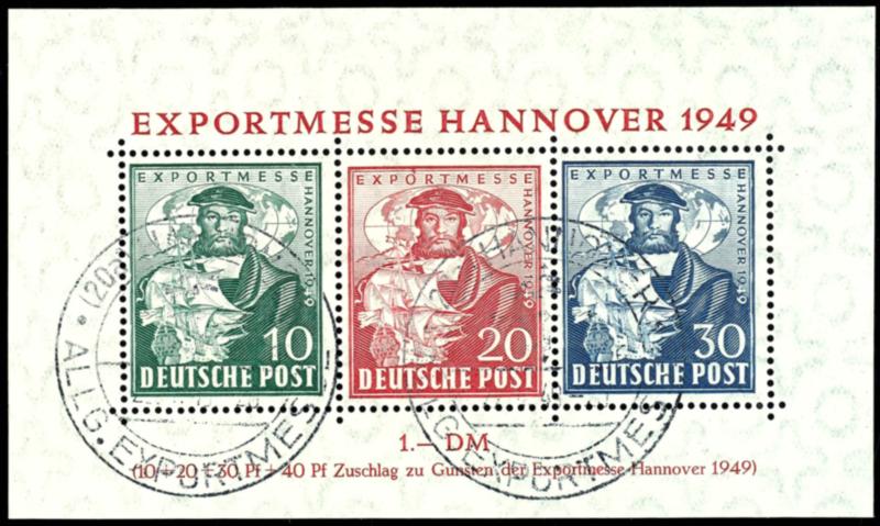 Hannover souvenir sheet, with special cancel, expertized Schlegel, Michel 250.- (Bl.1a) Hannover-Messe-Block, mit Sonderstempel, geprüft Schlegel, Mi. 250.-