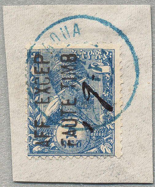 1911, 1g on 1g, blue, used, perf. 14x13 1/2, handstamped and surch. in manuscript, fresh and desirable, XF! Estimate 100€.