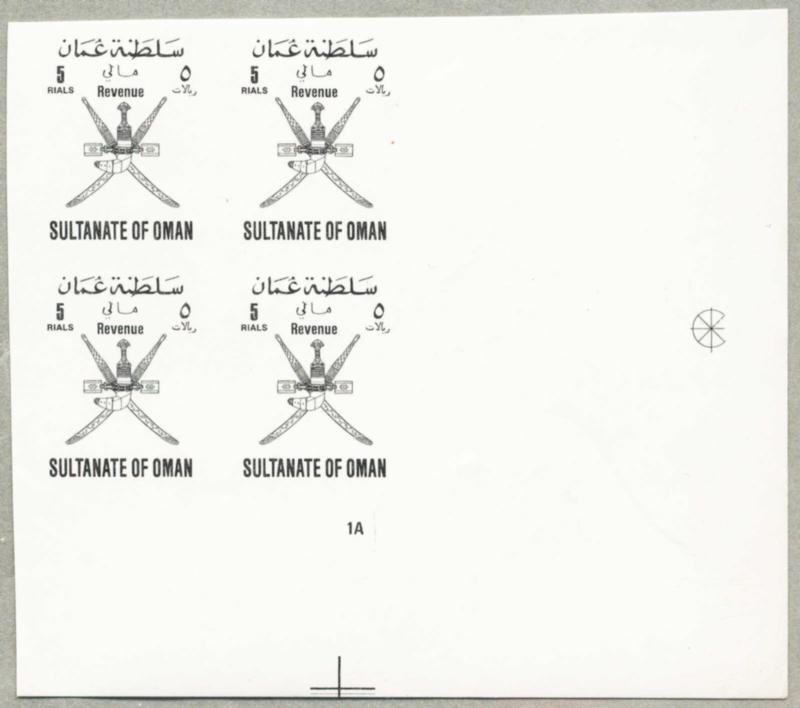 1972, 5 R., imperf. trial PROOF without colour, block of (4) from bottom right side with margins and printers marks, Revenue, no wmk, LPOG never hinged, exceedingly fresh, XF! Estimate 400€.