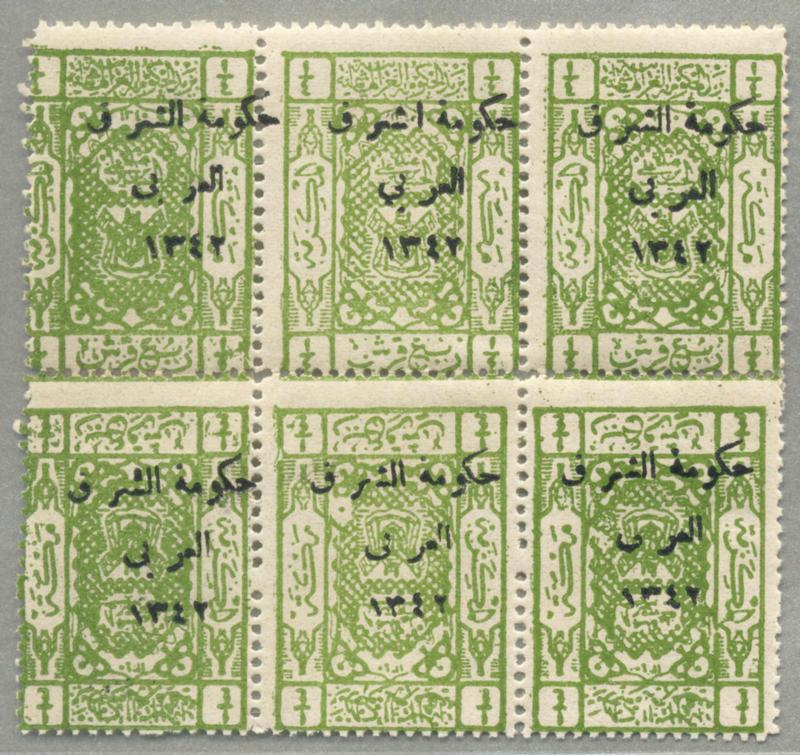 1924, 1/4 p. green, British Mandatory, block of (6), three TETE-BECHE pairs with black opt (3x normal and 3x INVERTED), MH, a fresh and attractive unit, VF! Estimate 1.400€.