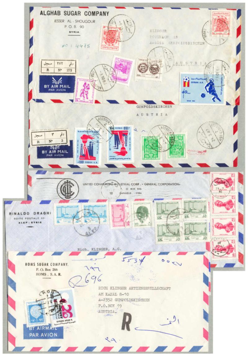 1980s, exciting collection of (5) registered/Airmail letters from SYRIA all to Gumpoldskirchen/AUSTRIA, good to excellent condition, VF-XF! Estimate 200€.