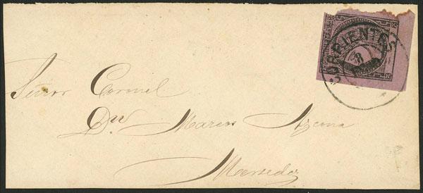 GJ.15, dark lilac, franking a front of folded cover sent from Corrientes to Mercedes on 8/JA/1879, very nice!