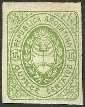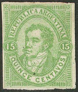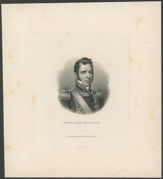 GJ.42, 1867 30c. Alvear, die essay of a design similar to the issued one (but not adopted, there are differencies) to be used in the stamp of 30c. Alvear, excellent quality, very rare!