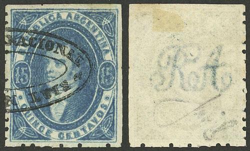 GJ.24c, 15c. with WATERMARK INVERTED var., used in San Luis, superb example, rare, signed by Kneitschel on back.
