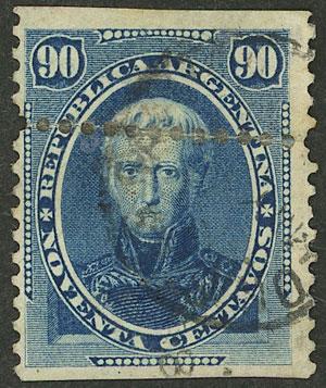 GJ.44, 1867 90c. Saavedra IMPERFORATE horizontally and with a diagonal perforation at top, used, reinforced with hinge, small defect, rare!!