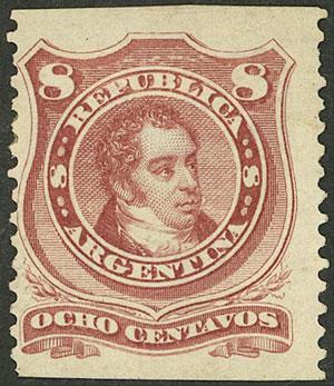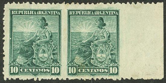 GJ.54PH, 1877 8c. Rivadavia IMPERFORATE HORIZONTALLY, very fine quality, signed by Kneitchel on back. The catalog value for a pair is US$300, good opportunity!
