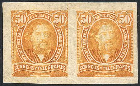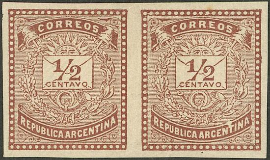 GJ.97P, 1889 ½c. Urquiza, IMPERFORATE PAIR of very fine quality!