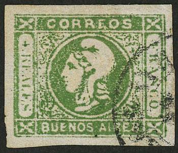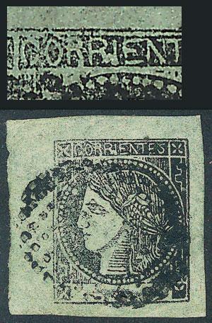 GJ.4, yellow-green, type 1, with variety "R and I of CORRIENTES joined", with dotted cancel of Corrientes, superb!