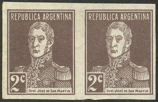 GJ.596P, 1924 2c. San Martín, handsome IMPERFORATE PAIR, VF!