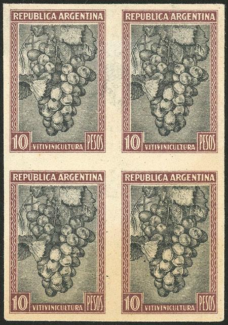 GJ.764, 10P. Grapes (wine), PROOF in the issued colors, imperforate block of 4 printed on regular paper for specimens, very fine quality!