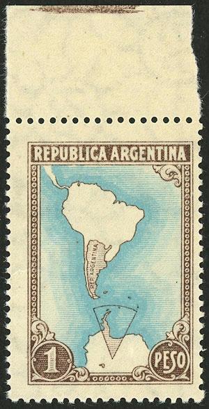 GJ.876SG, 1942 1P. Map with Antarctica, PRINTED ON GUM variety, MNH, superb and very rare!