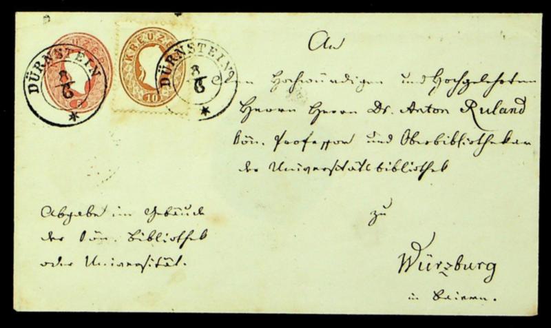 Austria 1863 Franz Josef 2v on cover from Durnstein via Salzburg to Wurzburg Germany