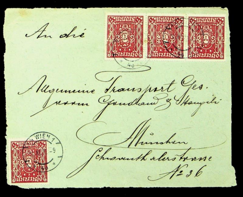 Austria 1922 50kx4 on cover front from Wien to Munich Germany