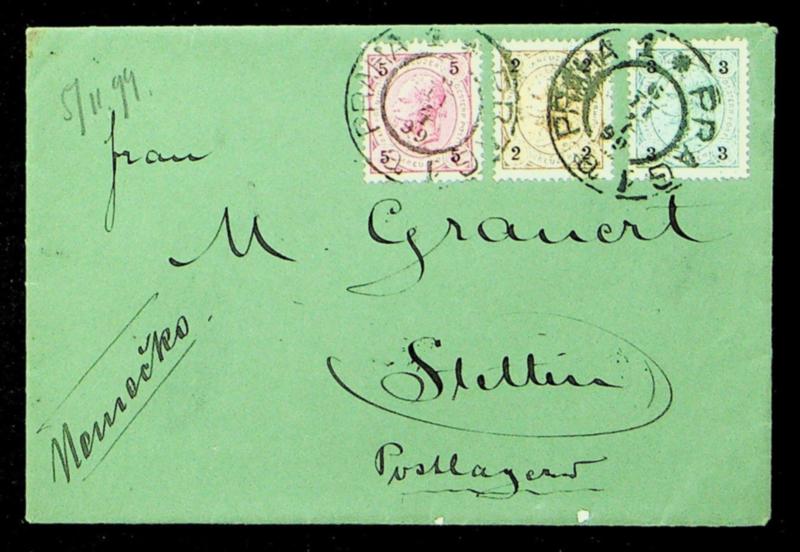 Austria Czech 1899 Franz Josef 3v on cover from Prague to Stettin Prussia Germany