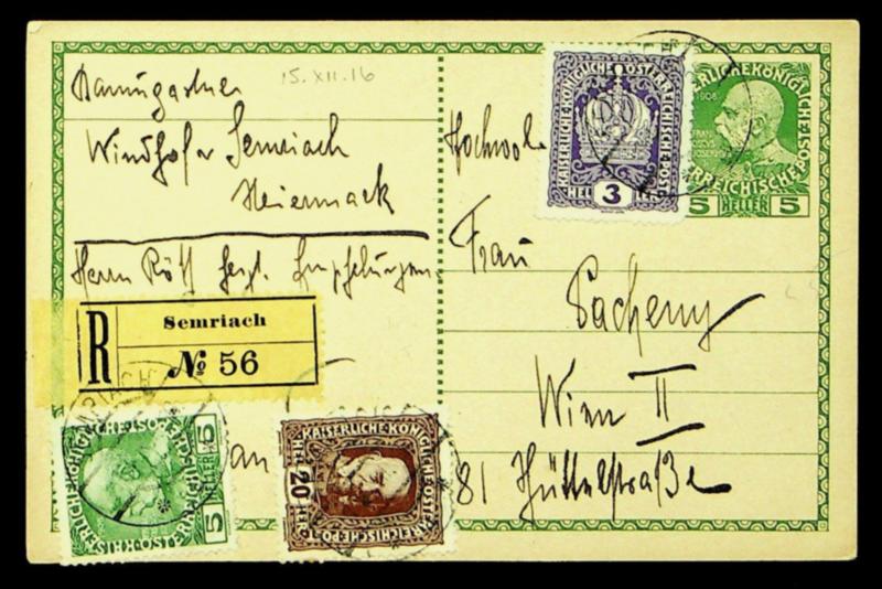 Austria 1916 WWI 4v regd postcard from Semriach to Wien