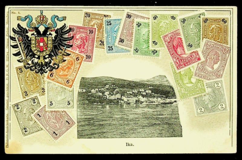 Austria Franz Josef stamps design w/ view of Ika & Coat of Arms unused UPU PPC