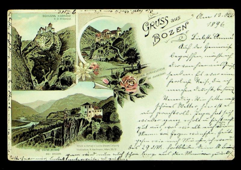 Austria 1896 greetings from Bozen PPC w/ Franz Josef 2kr to Bayreuth Germany