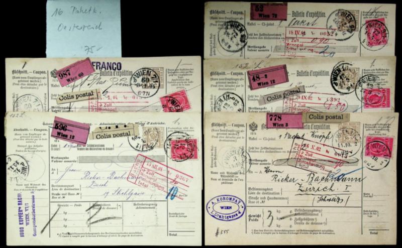 Austria set of 5 parcel cards from Wien to Zurich Switzerland