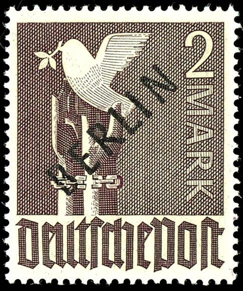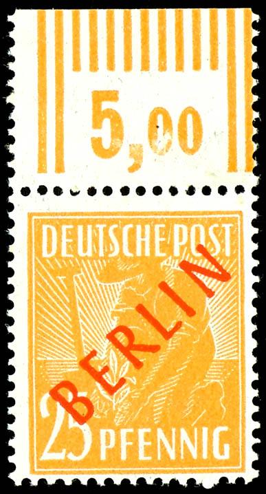 25 pfennigs black overprint, overprint flaw I "L from BERLIN with apostrophe", mint never hinged, very fine, expertized Schlegel BPP, Michel 120.- (10AFI) 25 Pfennig Schwarzaufdruck, Aufdruckfehler I "L von BERLIN mit Apostroph", postfrisch, tadellose Erhaltung, geprüft Schlegel BPP, Mi. 120.-