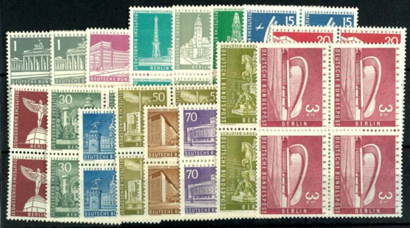 1 pfennigs to 5 Mark Berlin buildings (I), complete set to 19 values in horizontal pairs, perfectly mint never hinged, photo expertize Hans Dieter Schlegel BPP (2009) "the quality is perfect. ", Michel 2.700.- (42/60(2)) (page)