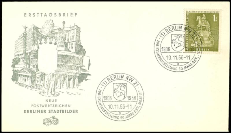 1956, 1 Mark buildings on official First Day Cover from 10.11.56. Michel 600.- (153) 1956, 1 Mark Bauten auf amtlichem Ersttagsbrief vom 10.11.56. Mi. 600.-