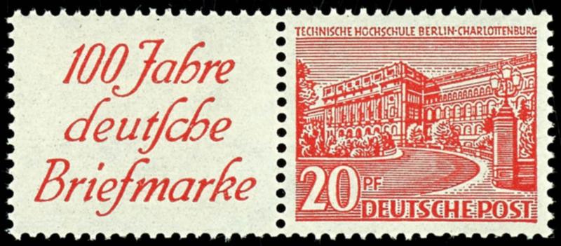 1949, Berlin buildings: "a hundred years German postage stamps" plus 20 pfennigs, horizontal se-tenant, mint never hinged, very fine, Michel 90.- (W13) 1949, Berliner Bauten: "100 Jahre deutsche Briefmarken" + 20 Pfennig, waagerechter Zusammendruck, postfrisch, tadellose Erhaltung, Mi. 90.-