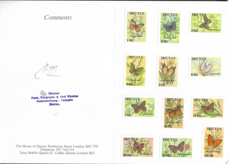 Bhutan 1989 very rare UNIQUE 12v Proofs on Butterfly - Affixed on House of Questa Archival card - Remarkable