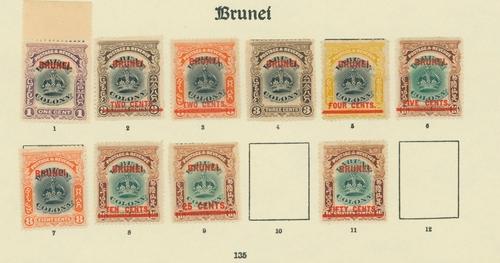 Brunei. 1895-1924 mint collection on album leaves, some duplication, including 1895 set, 1906 set, 1907-10 set, 1908-22 values to 50c, 1922 Malaya-Borneo Exhibition set, 1924-37 set. Some regumming on the earlier issues, otherwise fine.