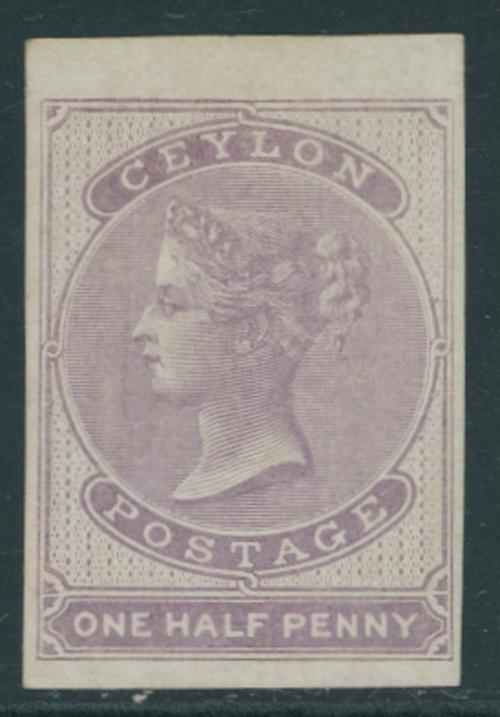 Ceylon. 1857-64 ½d. selection (6, including a block of four), noting two imperforate in dull mauve, plus perf 12½ block of four (some perf reinforcement), good to fine. S.G. 17, 18.