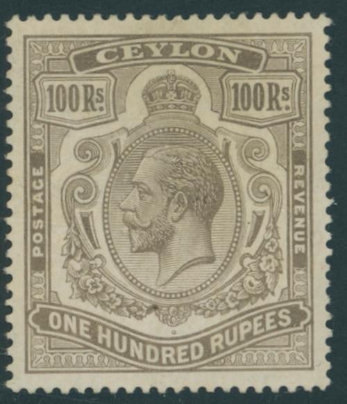 Ceylon. 1912-25 Watermark Multiple Crown CA. 100r. grey-black, large part original gum, very fine, S.G. 321, £3,500. Photo.