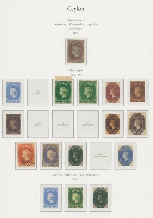 Ceylon. 1857-1935 mint and used collection on album leaves, with good early range, incl 1857 6d. blued paper used, 1857-59 values to 1/- used, 1861-64 values to 1/- used, 1863-65 values to 2/- used (thin), 1867-70 values to 1/- used, 1872-80 set unused, 1885 surcharges range noting 30c. on 6c., vari