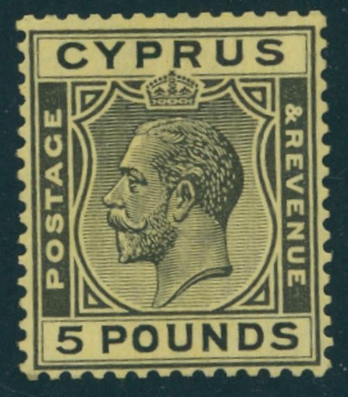 Cyprus. 1924-28 £5 black/yellow, fine mint, S.G.117a, £3,750. Photo.