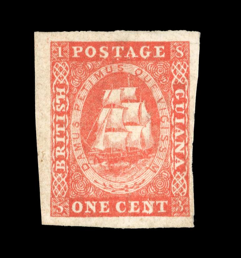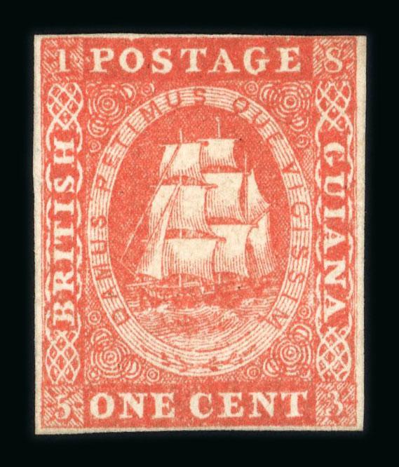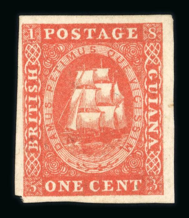 1853 1c vermilion (original printing) used, pos.5, with fine to very good margins, fresh vibrant colour, neat Demerara cds, very fine (S.G. £1'700).