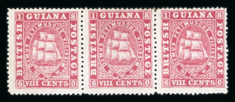 1875-76 8c deep rose perf.15 mint strip of three, very fine (S.G. £1'275 as singles).