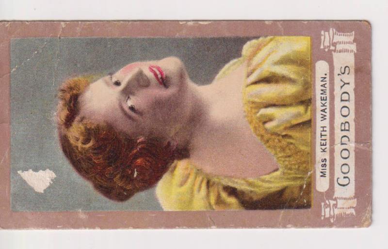 Cigarette card: 1900 "Eminent Actresses", publ Goodbody: "Miss Keith Wakeman". Fair cond (surface thin & small creases). Rare. Murray cat £70.