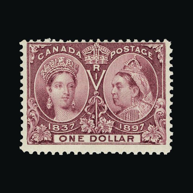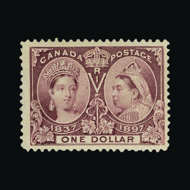1897 Jubilee $1 lake fine m.m. Centred slightly high but otherwise very fine with good colour. {MH} [US2] (Start Price / Minimum Bid) = £144.00)