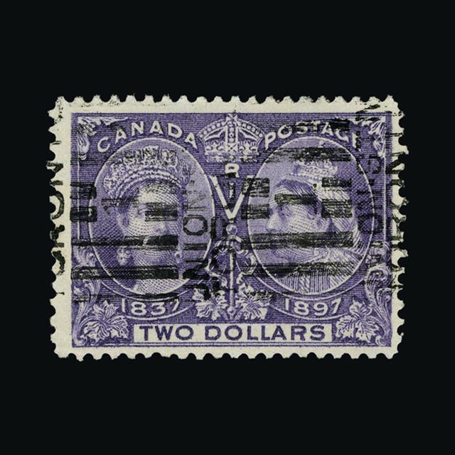 1897 QV Jubilee $2 deep violet well centred sound used with roller type cancel. {U} [US1] (Start Price / Minimum Bid) = £92.80)