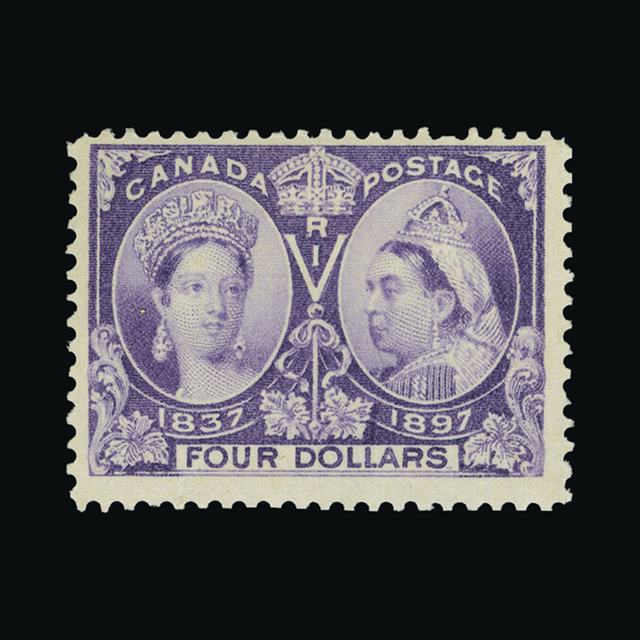 1897 QV Jubilee $4 Violet very attractive well centred l.m.m..One short perf top right hardly detracts. {MH} [US2] (Start Price / Minimum Bid) = £360.80)