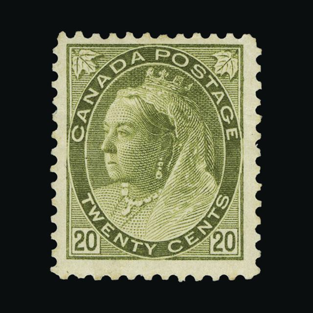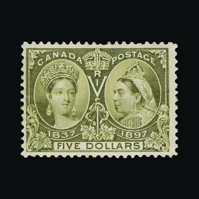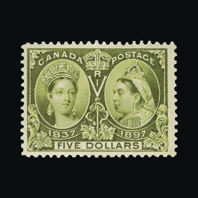 1897 QV Jubilee $5 Olive Green - An exceptional very attractive copy well centred m.m {MH} [US2] (Start Price / Minimum Bid) = £344.80)