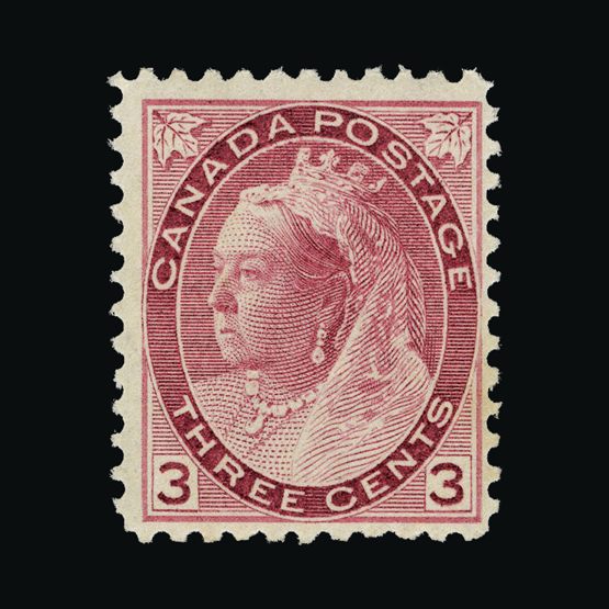 1897-98 QV issue with Maple leaf in all four corners 3c Carmine, mint small h/r x 2. {MH} (Start Price / Minimum Bid) = £30.40)