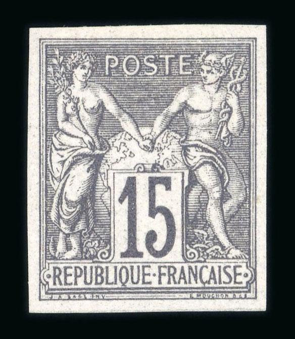 1877-1880, type Sage non dentelé Y&T n° 33 neuf * signé Brun, n° 42 en bloc de quatre timbres neufs et n° 43 neuf * signé Brun (Y&T €1'225), TB.