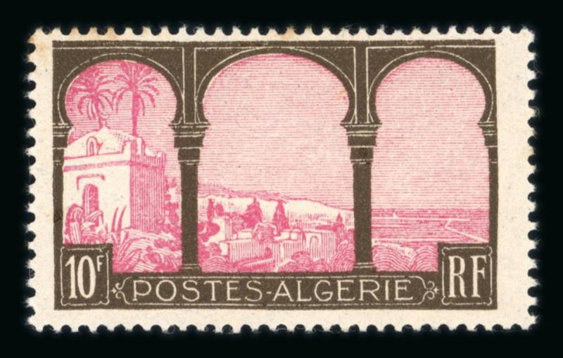 1927, Algérie n°84b 10fr brun s/ rose variété cinquième arbre neuf* TB. Signé Calves. Cote 890€.