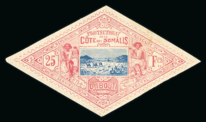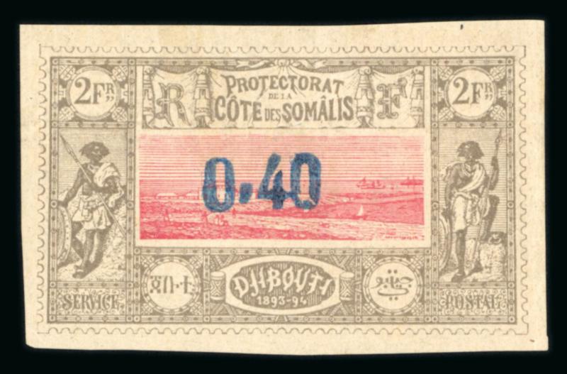 1899, Cote des Somalis Y&T n°25, surchargé 0f40 sur 2f, neuf * trace de charnière signé Brun Calves Scheller TB, cote 950€.